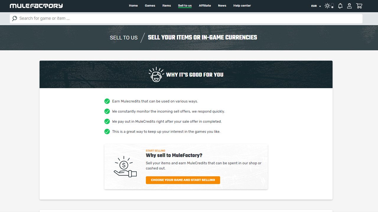 MuleFactory is an old timer on the market, formed in 2007 by gamers who turned their love for games into business. During the early days MuleFactory was focused on Diablo 2, later they implemented more games to their site including Diablo 3, Path of Exile, FIFA, Guild Wars and World of Warcraft. The team of MuleFactory is assembled by gamers around the world, working towards safe and secure RMT services for people that want to enhance their game experience.